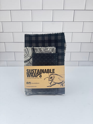 Sustainable Beeswax Wraps, Set of 3- Black Walnut Set