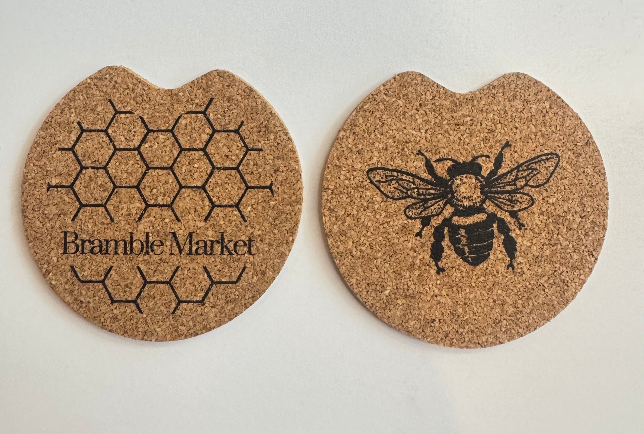 Bee & Honeycomb Cork Car Coasters (Set of 2)