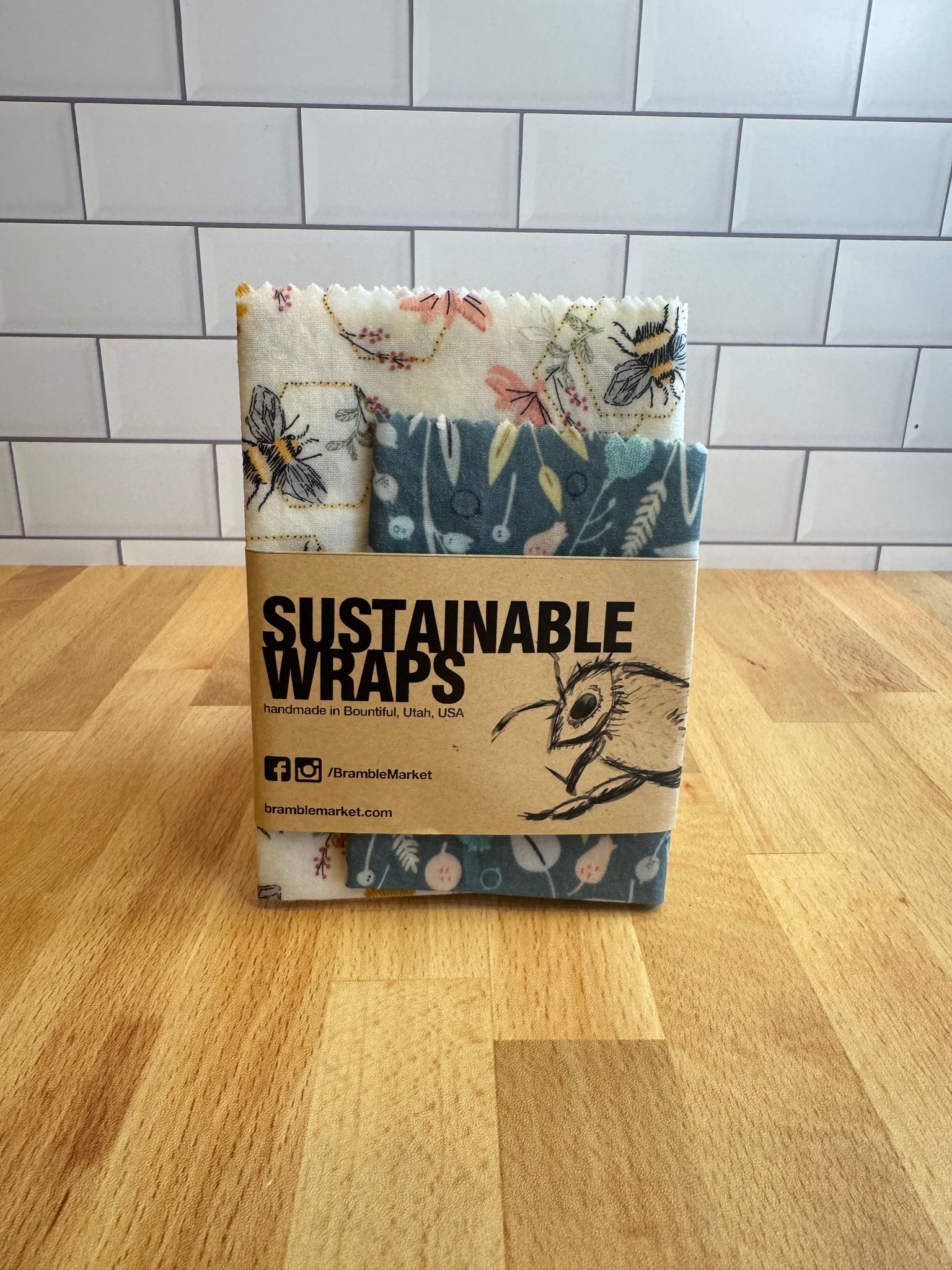 Flower Set. You will receive this patterned set. We love our wraps, each one is handmade in our workshop. Sustainable Wraps are easy to use and ideal to wrap your sandwich, cover your bowl of leftovers or wrap your fruit, cheese and veggies. An Eco-Friendly alternative to plastic wrap and baggies. These wraps are good for the Planet as well as fun and colorful to store your food. The perfect gift for the person who has everything! ---------------------------------------------------------------------------------------------------------------------------------------------------- 🍃This set includes: 1 Small Wrap, 1 Medium Wrap 🍃Size: approx. Small 9 Inches x 9 Inches, Medium 11 Inches x 11 Inches 🍃Materials: 100% cotton fabric, beeswax, pine resin, and coconut oil. 🍃To use: Simply place the wrap over your food or dish and with the warmth and pressure of your hands shape the wrap to seal your food. Suitable for vegetables, cheeses, sandwiches, breads and snacks: Not for raw meat, hot dishes or liquids. 🍃Care: To look after, you simply wipe off in cool water, with mild detergent. Reuse up to 12 months, when they no longer stick, simply compost. ----------------------------------------------------------------------------------------------------------------------------------- 🍃Follow us & see what's new Instagram: bramblemarket----